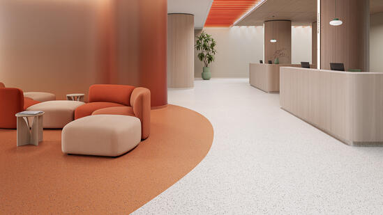Dernière nouveauté de la gamme de revêtements de sol vinyles homogènes iQ de Tarkett, iQ Motion associe l’excellence technique qui fait la renommée de la collection iQ à une nouvelle expression esthétique rayonnante. Dotée d’une palette raffinée de 16 tons naturels, iQ Motion s’inspire du motif terrazzo intemporel. Son design captivant marie un fond neutre et apaisant à un mélange dynamique de 6 accents de deux tailles, avec des finitions à la fois opaques et nacrées.